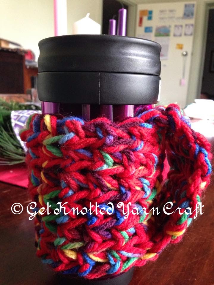 This pattern is by Moogly, and I think it's a fantastic idea! Happy Handle Coffee Cozy is the pattern I used, and I just tried it on my hand with the mugs I bought for the teachers as well - it feels fantastic and warm, and that's with the mugs empty! I sat and watched a movie with the family while I made it, and the first one was well and truly done by the time the movie had finished. Fast, easy, and a great gift for teachers. ;)